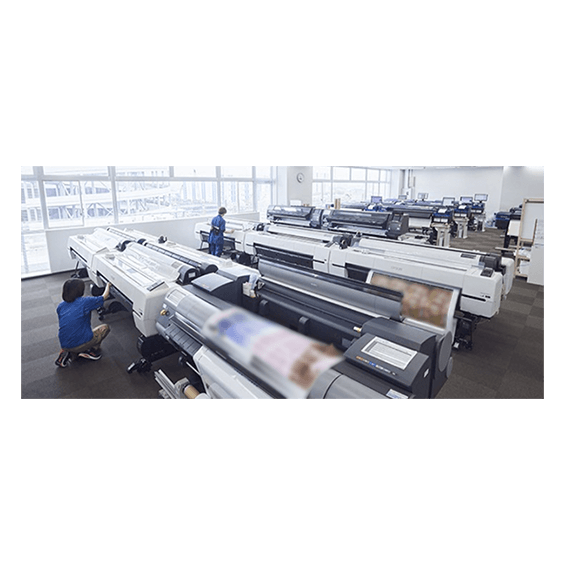水性・溶剤・ラテックス・UV・昇 華転写と種類豊富に取り揃えております。高速カットマシンや高品質をお約束するフラットタイプの貼り込み加工機、オートメーションで断裁できるポスターカットマシンや透明インクの厚盛りや白インク、フロスト調のプリントなども可能。最新鋭のインクジェットプリンターをぜひ、お試しください。