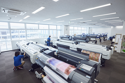 当社でもプリンターを備えていますが、持っているプリンターの最大出力幅は2500mmまで。特大サイズの案件に対応できる業者を探していました。ビーアンドピーさんは、5000mmまでの広幅を出力できるので受注案件の幅も広がりました。