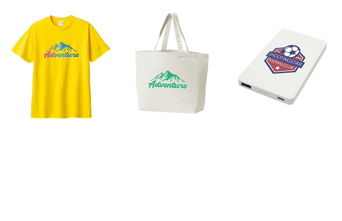 ノベルティや記念品・イベント用のグッズからTシャツなどのアパレルまで幅広く対応。150種以上グッズカタログ請求もお申し付けください。