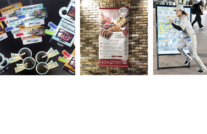 販売促進で欠かせないPOP・パネルやバナーを自社工場で制作が可能です。小ロットから大ロットまで安心してお任せください。ARサービスと連携した提案も可能です。